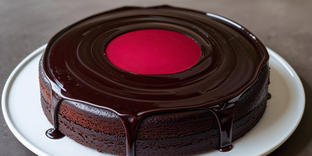 AI Generated. Delicious Chocolate Cake With Glaze And Red Center