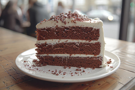 Tempt your senses with this stunning slice of chocolate cake featuring rich frosting and a crumbly texture, perfect for desserts or celebrations.