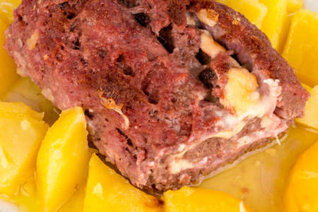 Meat rolls with cheese, ham and potatos.