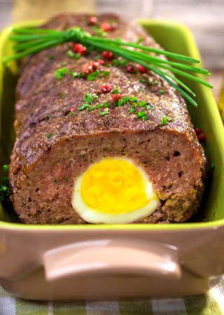 Meatloaf with boiled eggs