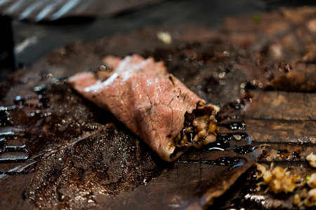 One of the stages of preparation of stuffed beef. See series