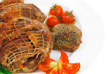 Veal rolls stuffed in white wine. French gourmet cuisine