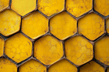 Honeycomb pattern featuring vibrant yellow hexagonal cells in close-up view