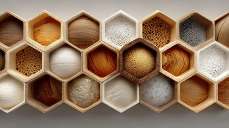 Abstract honeycomb macro texture. Agricultural or industrial layout. Aesthetic trend. Generative AI