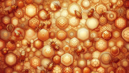 Illustrations of honeycomb patterns featuring hexagonal designs in vibrant yellow hues, capturing the natural and geometric beauty of beehives, perfect for backgrounds, wallpapers, and creative art projects.