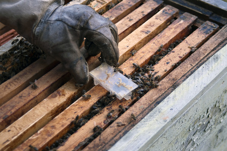 inspection of bee plates during regular maintenance of hives