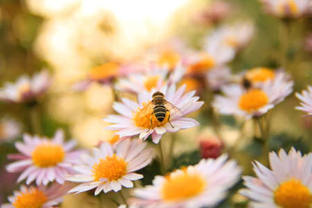 Bee eating's nectar from chrysanthemum flower