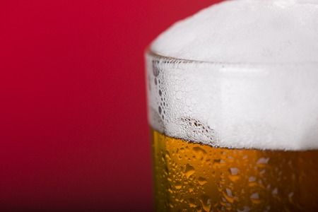 Glass of beer with foam, close-up. Macro shot.