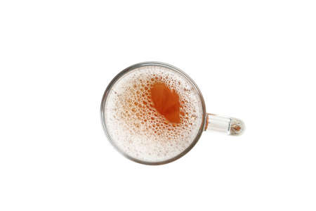 Top view on beer glass on white background