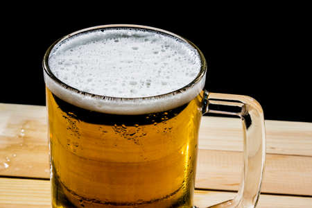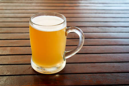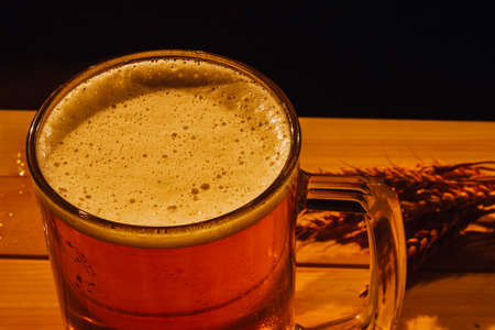 Glass of beer on a wooden table in the pub