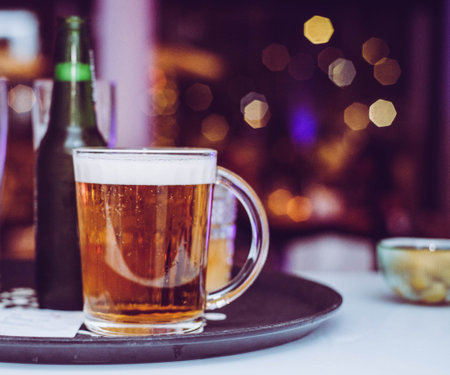 Glass of beer on the table in the bar