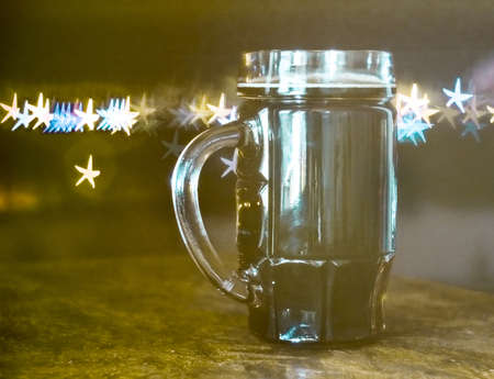 dark beer mug isolated on blurred background.bokeh of stars on a dark background.