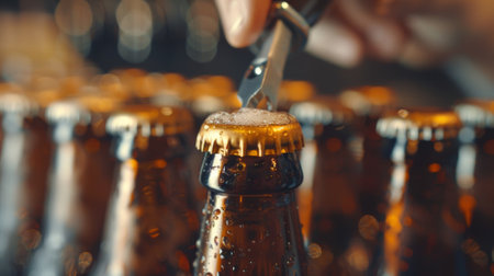 A captivating close-up image of a bottle being opened, showcasing droplets of water and frothy foam, symbolizing freshness and the joy of savoring a delightful drink.