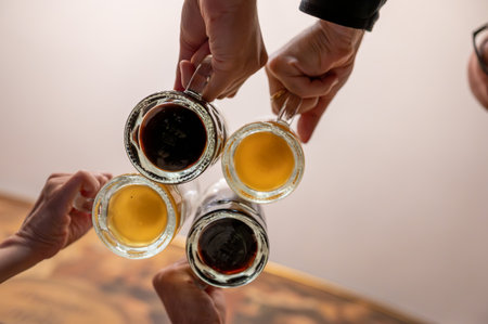 black and golden beer in glasses homemade brewing