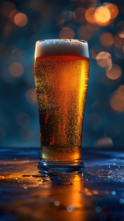 Icy Ale Delight in a Refreshing Glass with Bubbles, Perfect for Summer Holidays and Celebrations