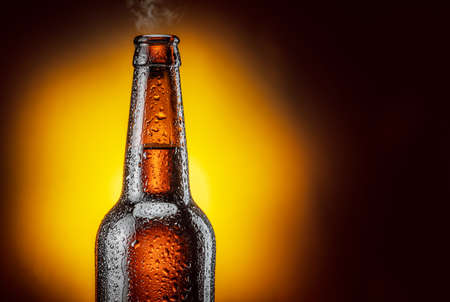 Cold beer bottle with drops
