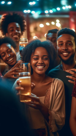 Cheers on the Terrace: A Vibrant Gathering of Multicultural Friends Bonding over Beers