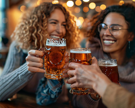 Toasting Diversity: Joyful Multicultural Girlfriends Sharing Beers