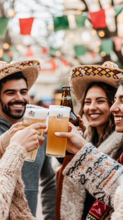 Friends celebrating Cinco de Mayo with drinks and joy outdoors, AI generated
