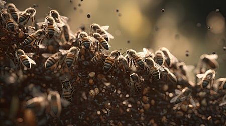 Collective effort of bees working together within the hive, symbolizing community and collaboration.