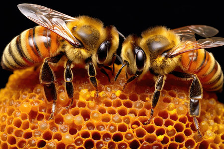 Honeybees at Work A Close-Up View of Busy Honeybees Constructing Honeycomb in a Hive
