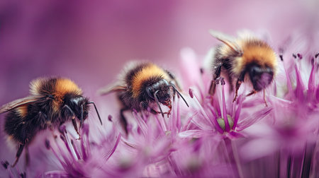Discover the enchanting scene of bees diligently pollinating vibrant pink flowers, highlighting the essential role of pollinators in maintaining ecological balance and beauty.