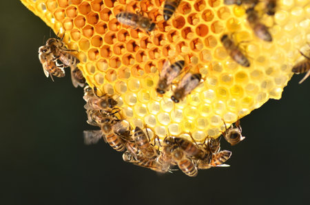 hardworking bees on honeycomb in apiary