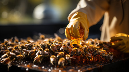 Honey farming and beekeeper with create. Generative AI