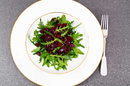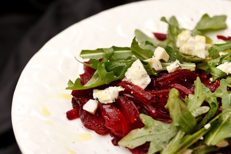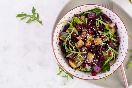 Dietary food without meat: Salad with arugula and beet. Studio Photo