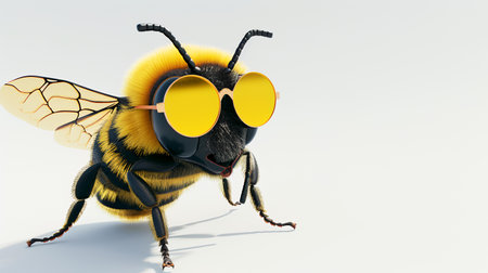 An AI generated illustration of a bee, with its yellow and black striped body, round eyes
