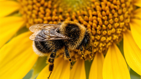 Stunning close-up of a busy bee pollinating a vibrant yellow flower, capturing the essence of nature's beauty and vital ecological processes