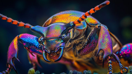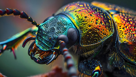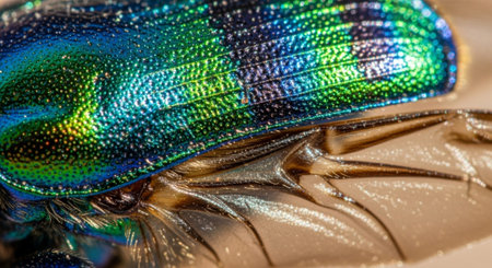 Iridescent beetle shell texture with vivid colors for creative design