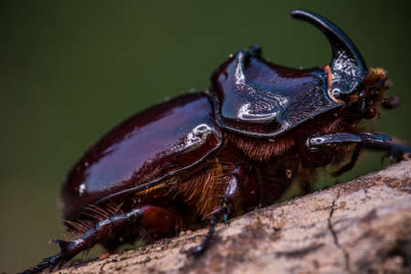 Rhinoceros beetle or Rhino beetle or Hercules beetle or Unicorn beetle or Horn beetle, close up, outdoors, island Bali Indonesia