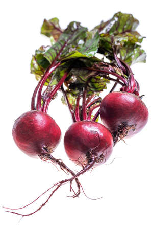 Bunch of fresh raw organic beets with leaves isolated on white background.