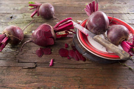 fresh beetroots on the wooden background