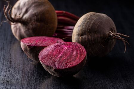 red healthy organic beetroot sliced on dark wood