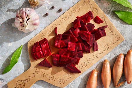 Organic Beetroot Cut into Cubes for Healthy Cooking.
