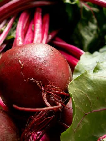 A closeup shot of fresh organic beets