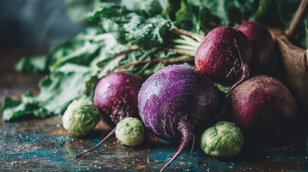 Freshly Harvested Beetroot and Brussels Sprouts Displayed in Rustic Style