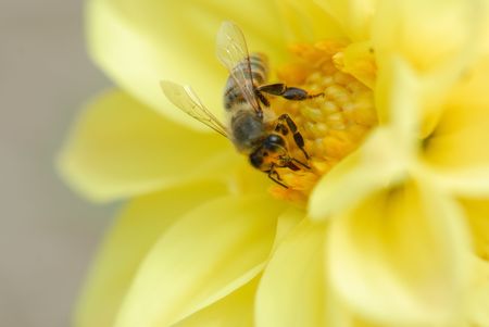 Bee on a yellow flower. Macro. Shallow depth of field.