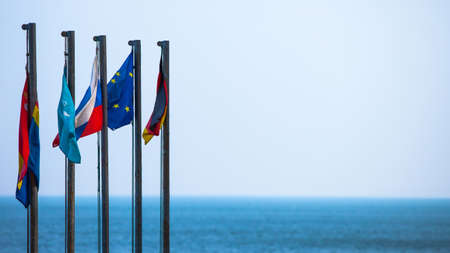 european flags on the mast, fluttering in the wind