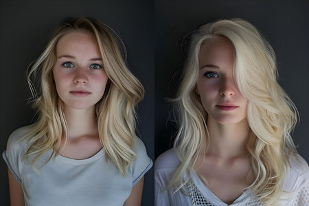 Blonde woman before and after salon visit showcasing hair transformation from damaged to healthy. Concept Hair Transformation, Salon Visit, Blonde Woman, Before and After, Healthy Hair