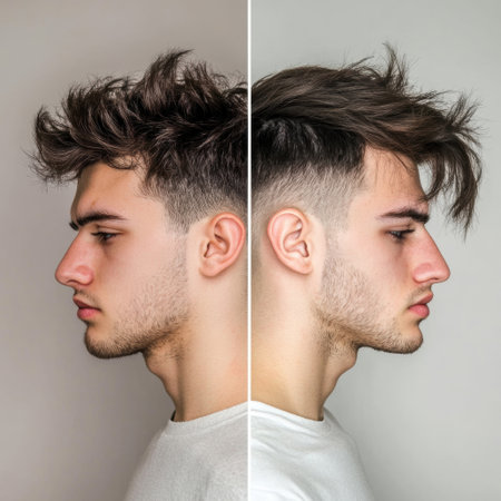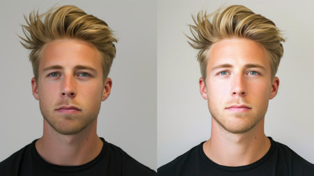 A side by side view highlights the difference between messy hair and a well styled haircut, illustrating personal grooming choices.