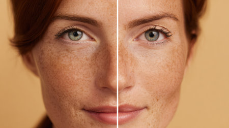 Side-by-side comparison of natural skin demonstrating the effects of skin care, highlighting improvements in texture, tone, and overall appearance.