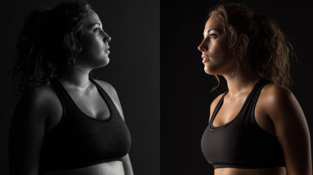 AI Generated. Young girl before and after success weight loss transformation
