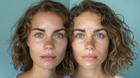 A before-and-after transformation of a woman with and without makeup, emphasizing the artistry and impact of makeup on enhancing natural beauty.