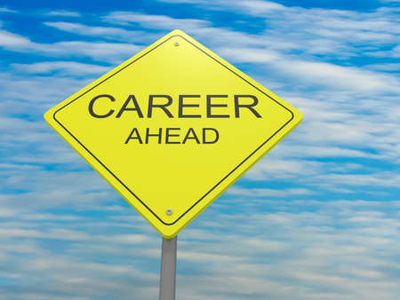 Yellow Road Sign Career Ahead Against A Cloudy Sky, 3d illustration