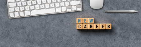 computer keyboard and cubes with message NEW CAREER on concrete background