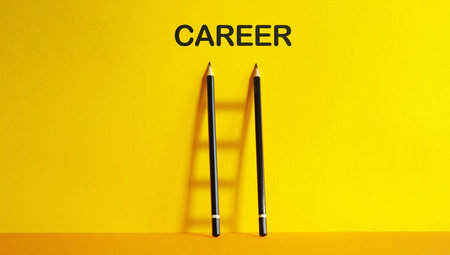 Creative career development and professional drawing career path. Pencil ladder concept for career growth and business success
