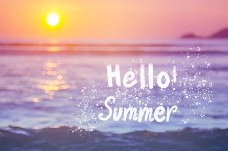 Hello summer wood text with bright color on beautiful background.